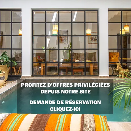 Le Riad Bab Aljana est idéalement situé au cœur de la Médina de Marrakech, à 5 minutes à pied de la place Jemaa El Fna, proche des souks animés ainsi que des principaux sites touristiques. Vous y vivrez un séjour charmant et authentique, au calme de l’une de ses six belles chambres, donnant sur un patio paisible agrémenté d’une piscine. Vous profiterez du toit-terrasse, équipé d’un solarium et d’un salon de détente. La table d’hôtes du riad vous invite à découvrir les saveurs généreuses de la gastronomie marocaine, avec des plats traditionnels confectionnés par notre excellente cuisinière à base de produits frais du marché. Notre équipe est disponible 24h/24 et 7j/7 pour répondre à vos besoins, et vous conseillera au mieux pour organiser vos transferts, excursions, visites et loisirs.