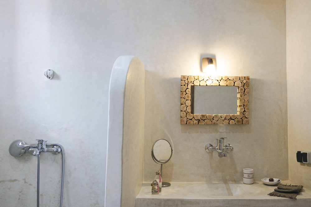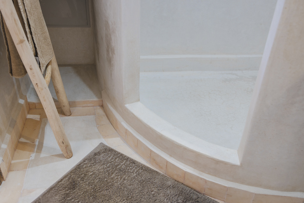 Douche, lavabo, toilettes, tadelakt
