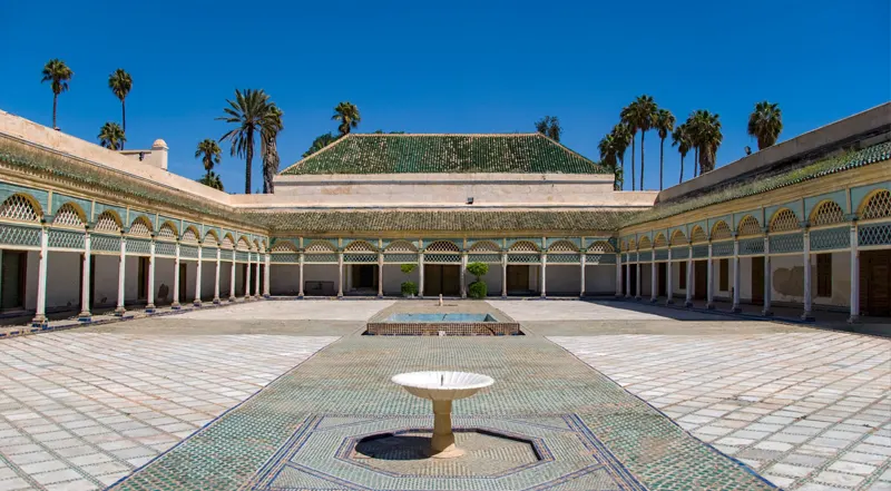 Le palais impressionne par ses patios, ses colonnes et ses plafonds peints à la main. Chaque salle révèle un détail. Bois sculpté, zellige raffiné, fontaines centrales. On se sent transporté dans un autre temps.