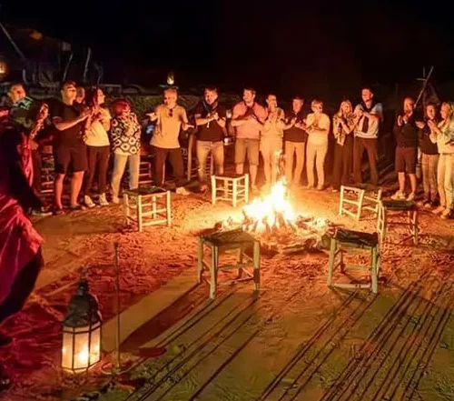 Après l’atterrissage, ajoutez une touche gustative à votre expérience avec un délicieux petit déjeuner typiquement marocain. Servi sous une tente berbère accueillante et joliment aménagée, le buffet, généreux et varié, met à l’honneur les saveurs locales pour prolonger de manière conviviale cette belle matinée. Un vrai moment de partage, qui soutient l’artisanat et l’économie locale.